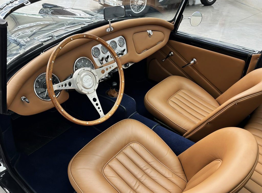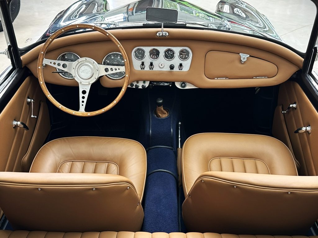 In der Farbkombination Adriatic blue mit der Innenausstattung in hochwertigstem Leder Camel und einem dezenten schwarzen Mohair Softtop ist wahrscheinlich kein schönerer und besserer Dart am Markt verfügbar.
