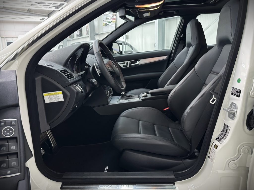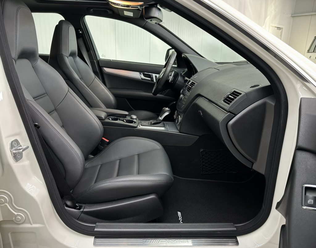Es handelt sich um ein unfall- und nachlackierungsfreies Fahrzeug aus den USA mit belegbarer Historie und ohne jeden Makel. Seit vielen Jahren ist dieser C63 AMG obendrein vollständig PPF foliert, um den Originallack in Calcitweiß zu schützen.