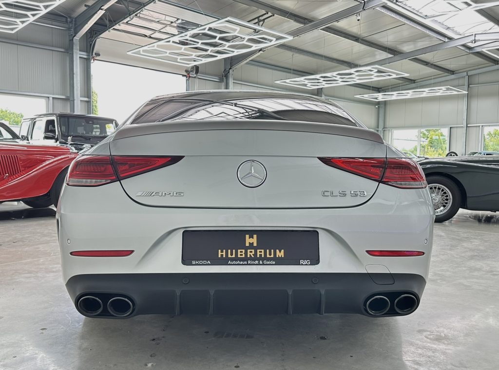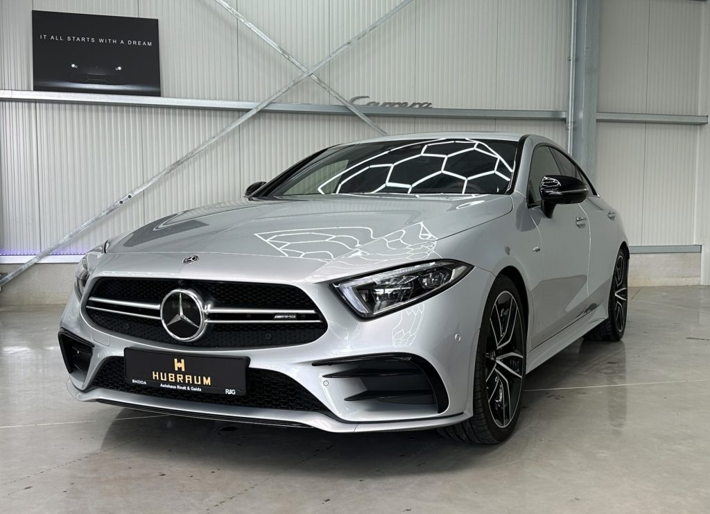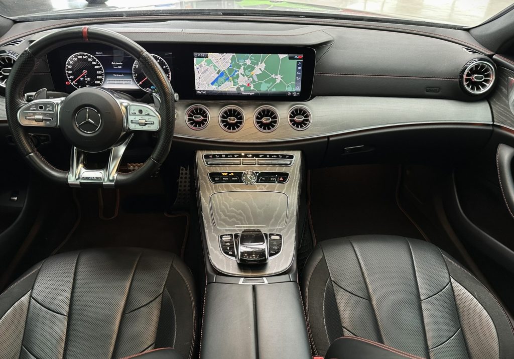 Airbag Fahrer-/Beifahrerseite, Ambiente-Beleuchtung (erweiterter Umfang), AMG-Optic-/Styling-Paket 1, Armaturentafel Oberteil in Ledernachbildung Artico, Außenspiegel schwarz lackiert, Beckenairbag vorn (Pelvisbag), Brillenfach im Dachhimmel integriert, Design- und Ausstattungslinie Standard, Elektromotor 16 kW (Hybridantrieb), Fahrassistenz-System: Agility Select / Dynamic Select (Fahrmodusschalter), Fahrassistenz-System: aktiver Bremsassistent, Fahrassistenz-System: aktiver Spurhalteassistent, Fahrassistenz-System: Geschwindigkeitslimit-Assistent, Fensterheber elektrisch vorn + hinten, Fußmatten AMG, Isofix-Aufnahmen für Kindersitz an Rücksitz, Karosserie: 4-türig, Knieairbag Fahrerseite, Kommunikationsmodul (LTE) Vorbereitung Mercedes me connect, Kopf-Airbag-System (Windowbag), Kraftstofftank: vergrößert, Kühlergrill Diamant-Optik, Kühlerjalousie, regelbar (Airpanel), Lenkrad (Sport) mit Multifunktion, LM-Felgen, Mercedes-Benz Notrufsystem, Mild-Hybrid 336 kW (Motor 3,0 Ltr. - 320 kW), Otto-Partikelfilter (OPF), Reifendruck-Kontrollsystem, Schadstoffarm nach Abgasnorm Euro 6d-TEMP, Seitenairbag (Sidebag) vorn, Sitz-Komfort-Paket, Sitzbelegungserkennung für Airbag Beifahrerseite, Sitzbezug / Polsterung: Ledernachbildung Artico / Dinamica, Sitzheizung vorn, Sport-Auspuffanlage, Sport-Fahrwerk (AMG Ride Control +), Verkleidung / Spoiler hinten (AMG)