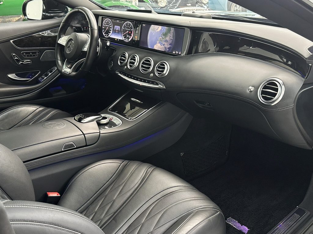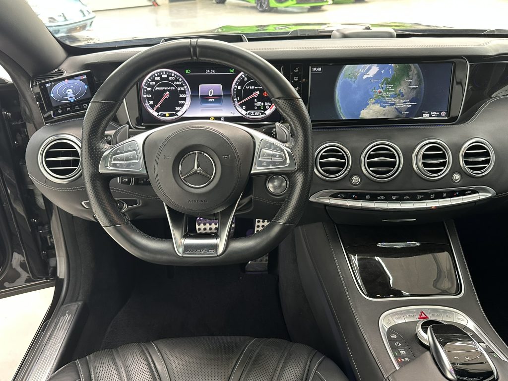 Adaptive Scheibenwischeranlage (Magic Vision Control) beheizt, Adaptives Bremslicht, Air-Balance-Paket, Airbag Fahrer-/Beifahrerseite, Aktive Motorhaube, Aktives Federungs-/Dämpfersystem (Aktive Body Control / Magic Body Control), Ambiente-Beleuchtung (erweiterter Umfang), Antriebs-Schlupfregelung (ASR), Audio-Navigationssystem: COMAND Online, Außen-/Innenspiegel mit Abblendautomatik, Außenspiegel elektr. anklappbar, Außenspiegel mit Umfeldleuchte, Blinkleuchte in Außenspiegel integriert, Bremssättel lackiert, Design- und Ausstattungslinie Standard, DVD-Wechsler, Edelstahlpedale Sportdesign, Einschaltautomatik für Fahrlicht, Einstiegsleisten beleuchtet, Exklusiv-Paket, Fahrassistenz-Paket Plus, Fahrassistenz-System: aktiver Park-Assistent, Fahrassistenz-System: Attention-Assist (Müdigkeitserkennungs-Sensor), Fahrassistenz-System: Berganfahrhilfe, Fahrassistenz-System: Bremsassistent Plus, Fahrassistenz-System: Seitenwind-Assistent, Fahrassistenz-System: Verkehrszeichenerkennung, Fernentriegelung Heckdeckel, Fernschließung Heckdeckel, Feststellbremse elektrisch, Fußmatten AMG Exklusiv, Handschuhfach mit Kühlfunktion, Head-up-Display (Frontsichtanzeige), Heckleuchten LED, Infotainment-System: Mercedes me connect, Infotainment-System: Remote Online, Innenhimmel designo Nappa (AMG), Innenspiegel und Außenspiegel links mit Abblendautomatik, Isofix-Aufnahmen für Kindersitz an Rücksitz, Kamerasystem 360 Grad, Karosserie: 2-türig, Kombiinstrument mit Variabler Anzeige (Widescreen Cockpit), Komfort-Klimaautomatik (Thermotronik), Kopf-Airbag-System vorn, Kraftstofftank: 80 Ltr. (vergrößerter Inhalt, Volumen 2), Ladekantenschutz (Edelstahl), Lendenwirbelstützen vorn, elektr. verstellbar, Lenkrad (Sport) mit Multifunktion, Lenksäule (Lenkrad) elektr. verstellbar, LM-Felgen, Media Interface (Universal-Schnittstelle für iPod / AUX / USB / MP3), Media-Display, Memory-Paket, Mercedes-Benz Notrufsystem, Metallic-Lackierung, Motor 6,0 Ltr. - 463 kW V12 KAT, Panoramadach (Glas), Reifendruck-Kontrollsystem, Reiserechner, Rückfahrkamera, Schadstoffarm nach Abgasnorm Euro 6, Seitenairbag (Sidebag) hinten, Seitenairbag (Sidebag) vorn, Sender für Garagentoröffner (integriert), Servoschliessung für Türen und Heckklappe / Heckdeckel, Sitz vorn links elektr. verstellbar, Sitz vorn rechts elektr. verstellbar, Sitz-Komfort-Paket, Sitzbelegungserkennung für Airbag Beifahrerseite, Sitze vorn: Klimatisierung, Sitzheizung Plus vorn, Sonnenblenden mit Spiegel (beleuchtet), Sonnenschutzrollo an Heckscheibe elektrisch, Splitview-Display, Sportsitze vorn, Start/Stop-Anlage, Styling-Paket (AMG / Exterieur), Surround-System Burmester High-End, Touchpad mit Drehknopf (Mittelkonsole), TV-Tuner, Verbundglas wärmedämmend und infrarot-reflektierend, Vorrüstung Mobiltelefon/Handy / Komfort-Telefonie / LTE-fähig, Warnanlage / Statusanzeige für Sicherheitsgurte im Fond