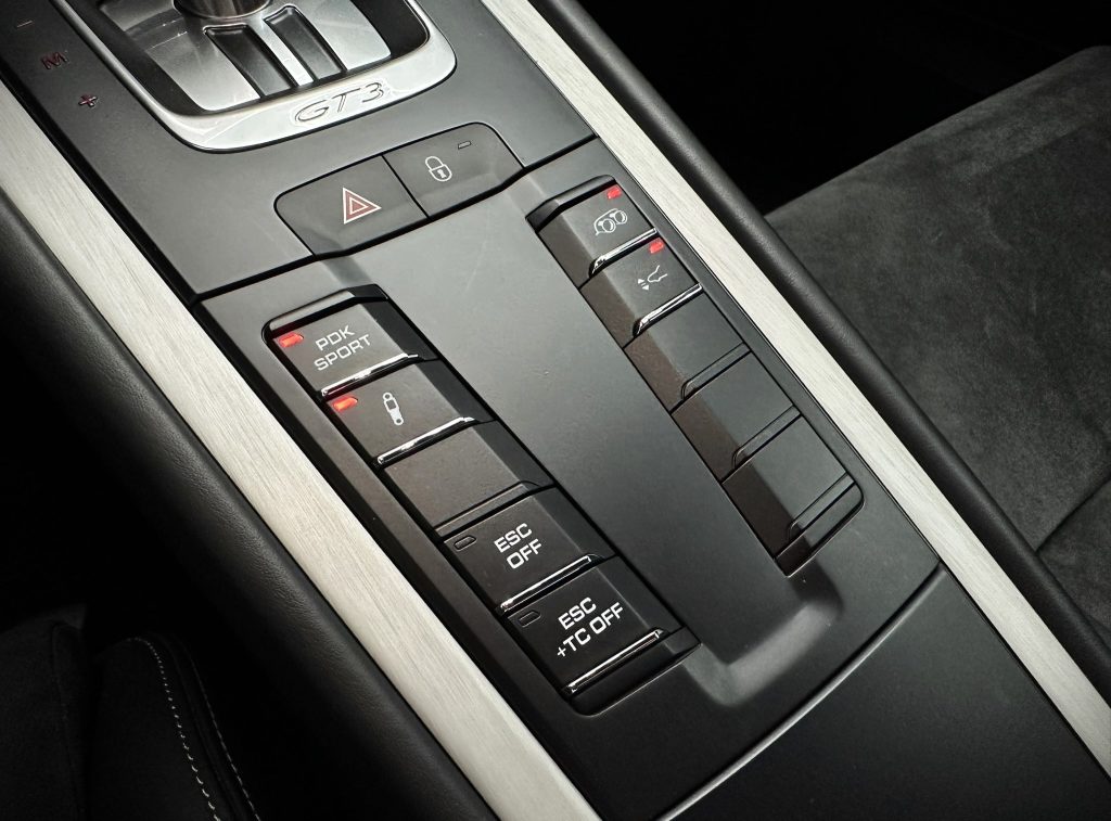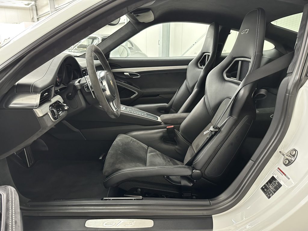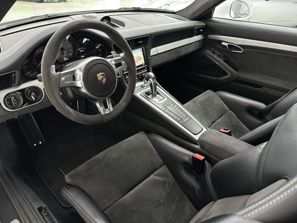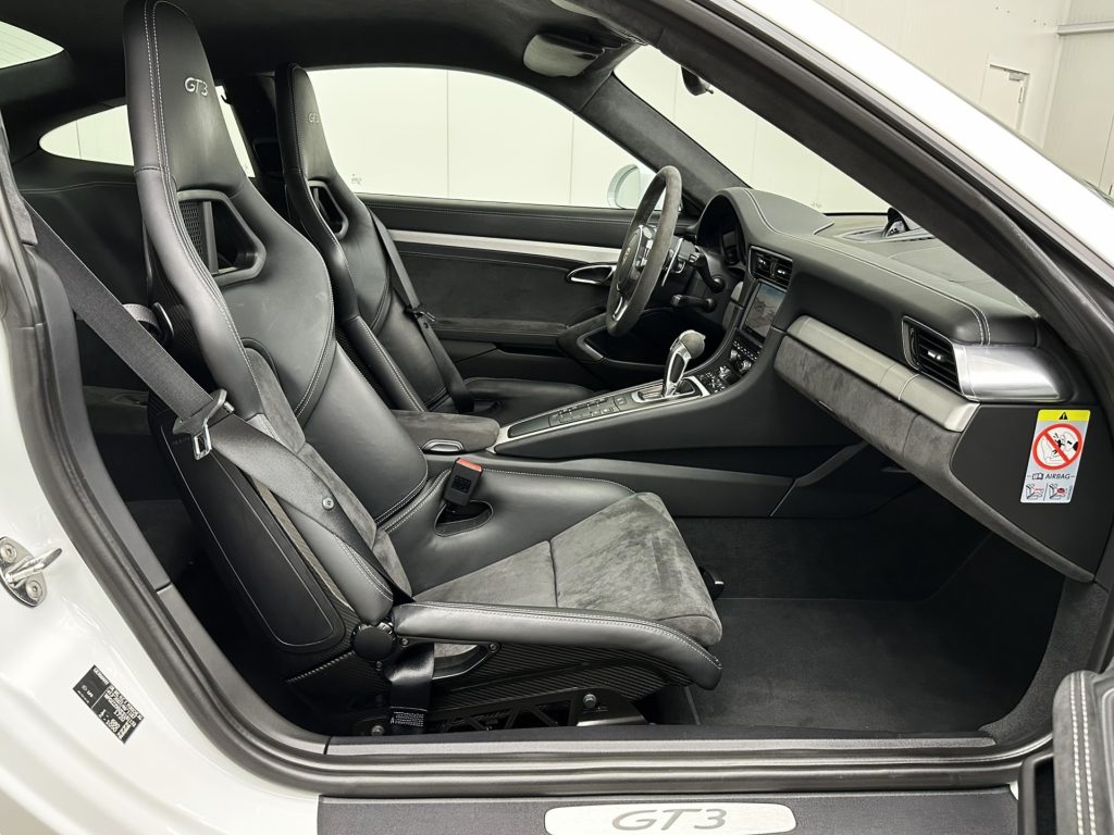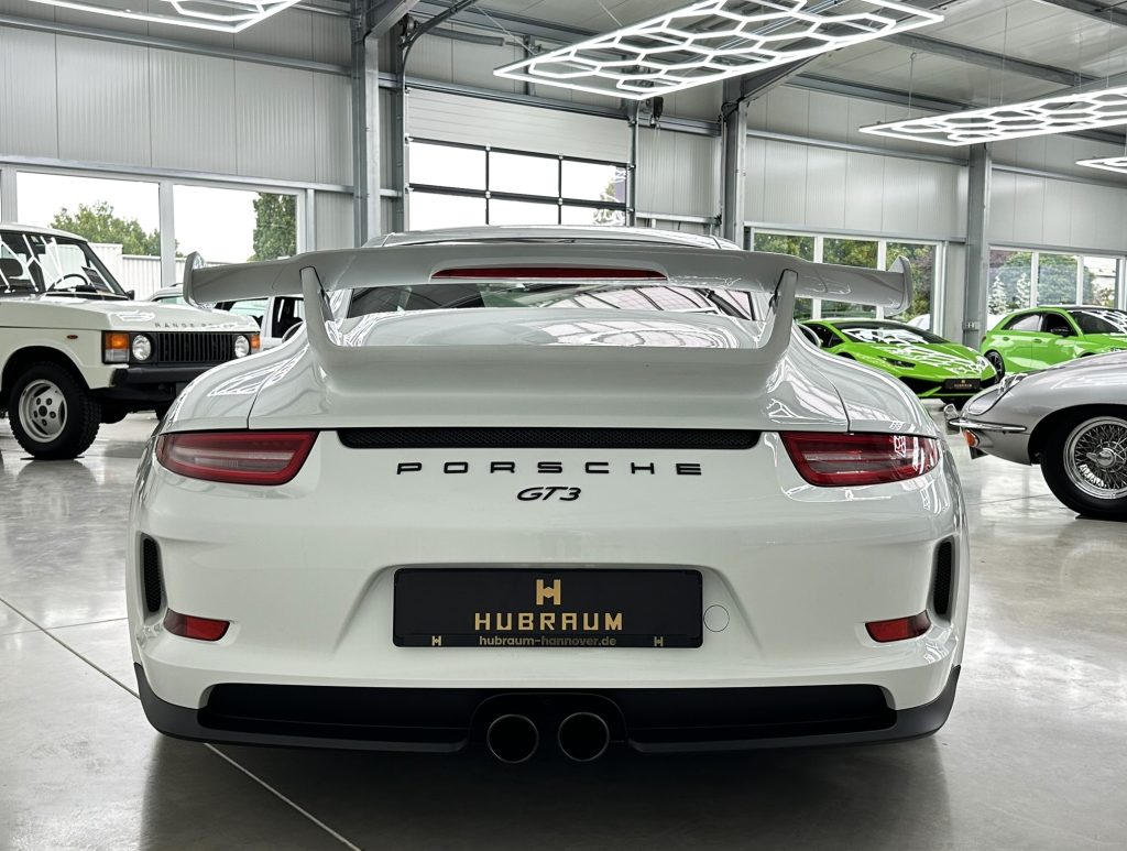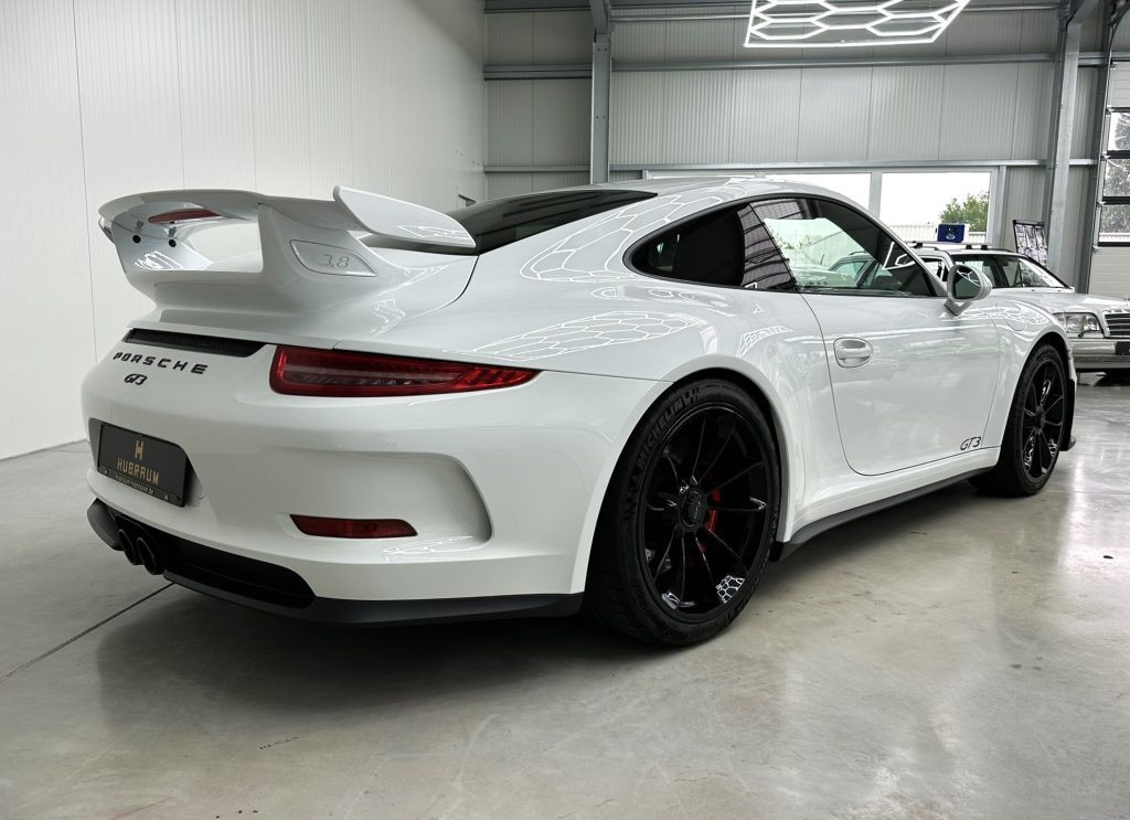 Airbag Fahrer-/Beifahrerseite, Antischlupfregelung (ASR), Antriebsart: Heckantrieb, Automatisches Bremsen Differential (ABD), Außenspiegel asphärisch, links, Außenspiegel elektr. verstell- und heizbar, beide, Bordcomputer, Bremssättel Rot lackiert, Dachhimmel Alcantara, Einschaltautomatik für Fahrlicht, Getränkehalter, GT3, Heckleuchten LED, Heckscheibe heizbar, Heckspoiler, Karosserie: 2-türig, Klimaautomatik, Kopf-Airbag-System Porsche Side Impact Protection System (POSIP), Kopf-Schulter-Airbag vorn (Thoraxbag), Lenkrad (Alcantara 3-Speichen) mit Schaltfunktion, Lenksäule (Lenkrad) verstellbar, LM-Felgen, Make-up-Spiegel im Fond beleuchtet, Motor 3,8 Ltr. - 350 kW KAT, Motor-Schleppmoment-Regulator (MSR), Parkbremse elektrisch, Porsche Active Suspension Management (PASM), Porsche Torque Vectoring Plus (PTV Plus), Reifen-Reparaturkit, Reifendruck-Kontrollsystem, Schadstoffarm nach Abgasnorm Euro 5, Schalt-/Wählhebelgriff Alcantara / Race-Tex, Seitenairbag vorn, Sportsitze Plus - Rückenlehnen lackiert, Universal-Schnittstelle Audio, Verglasung getönt