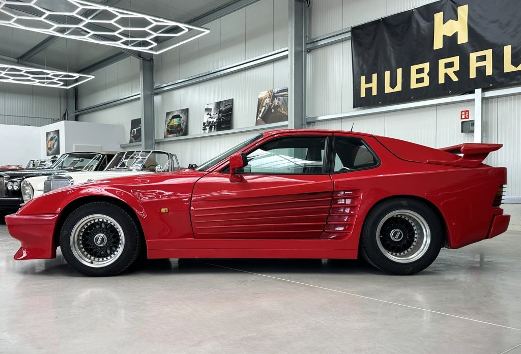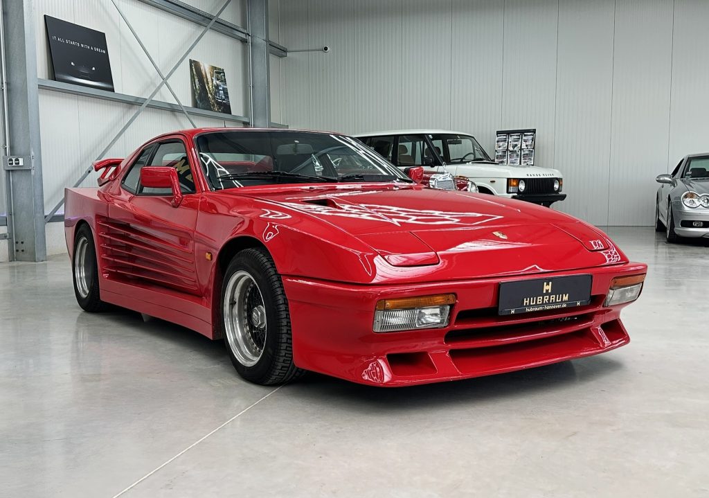 Zum Verkauf steht ein außergewöhnlicher Porsche 944S aus dem Baujahr 1986, ausgestattet mit dem seltenen GCS Bennemann Breitbau, dessen Design deutlich an die ikonische Linienführung des Ferrari Testarossa angelehnt ist.